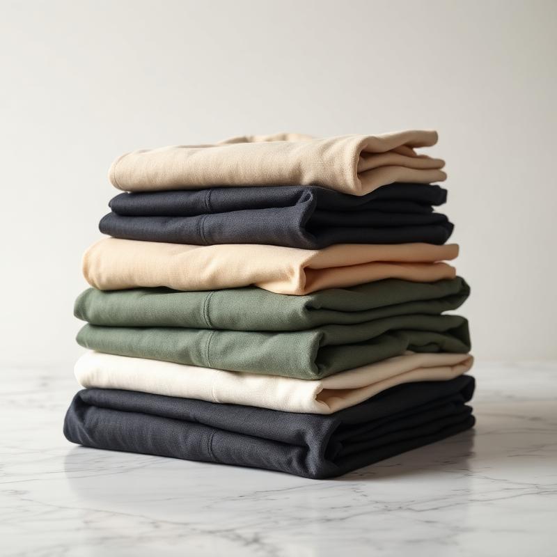 We source from retail-quality brands. Heavyweight cotton, athletic performance fabrics, and premium accessories.
